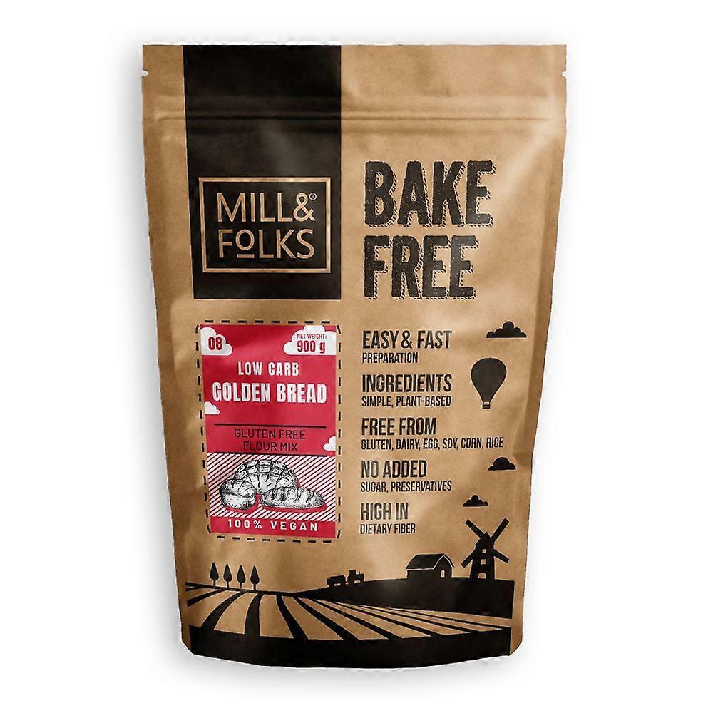 Mill & Folks Bake-Free Low Carb Golden Bread Flour Mix Gluten-free 900g offers an exceptional solution for those seeking nutritious, diet-friendly baking options. This carefully crafted flour blend is designed to cater to sensitive diets, being free from gluten, dairy, eggs, soy, yeast, corn flour, potatoes, rice, and added sugars. Ideal for anyone looking to enjoy wholesome, low-carb, fiber-rich, plant-based breads and baked goods without compromising on taste or texture.Made from a unique combination of gluten-free millet and quinoa flours sourced from Poland, combined with a fibre mixture of psyllium husk and bamboo fibre flours, plus golden flaxseed flour, this mix delivers excellent digestibility and rich nutritional value. It enables you to effortlessly create warm, fluffy breads, crispy buttery crescent buns, or soft, pillowy rollsall bursting with irresistible flavor and texture.This kitchen-ready flour mix is perfect for preparing a wide range of vegan, gluten-free, dairy-free, egg-free, soy-free, corn-free, potato-free, and rice-free baked goods. Its high dietary fiber content supports digestive health, while the absence of added sugars, starches, and fats makes it a guilt-free choice for mindful eating.Each 900g bag is sufficient to make up to four loaves of bread (approximately 410g each) using a basic yeast bread recipe, allowing you to enjoy fresh homemade bread tailored to your dietary preferences and lifestyle.Key Benefits: Gluten-free, dairy-free, egg-free, soy-free, and yeast-free formula Free from corn flour, potatoes, rice, added sugars, starches, and fats Low carbohydrate and high in dietary fiber Plant-based ingredients suitable for vegan diets Easy to use for baking a variety of breads and pastries Supports digestive health and sensitive dietsUsage: Ideal for baking breads and pastries that comply with vegan, gluten-free, and allergen-friendly dietary requirements. Simply follow your preferred yeast-based recipe to create nourishing, delicious baked goods that everyone can enjoy.