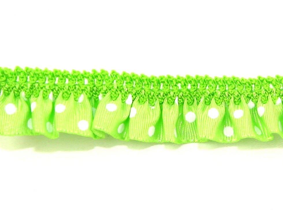 Minerva 20mm Polka Dot Frilled Stretch Trim Lime Green - per metre