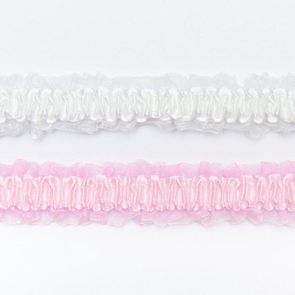 Minerva 25mm Satin Organza Ruched Stretch Trim Pink - per metre