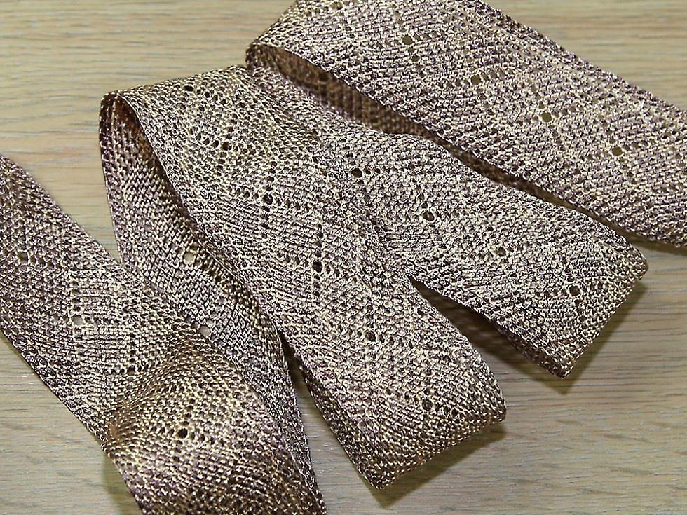 Minerva 35mm Rayon Lace Trim Mink & Beige - per metre