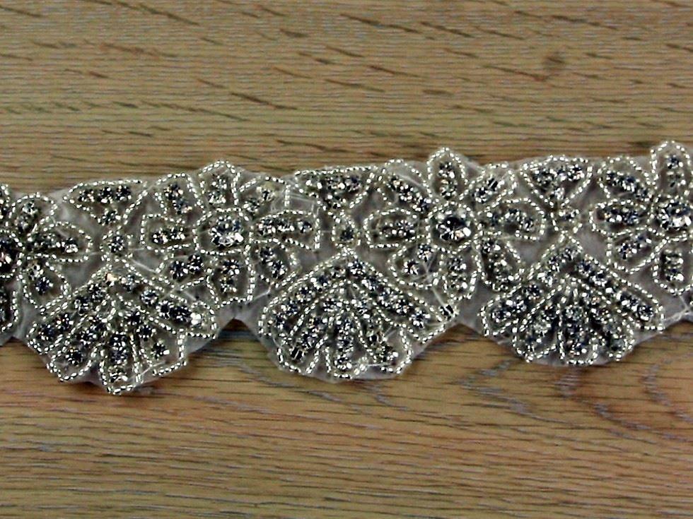 Minerva 55mm Crystal Diamante Lace Trim Silver - per metre