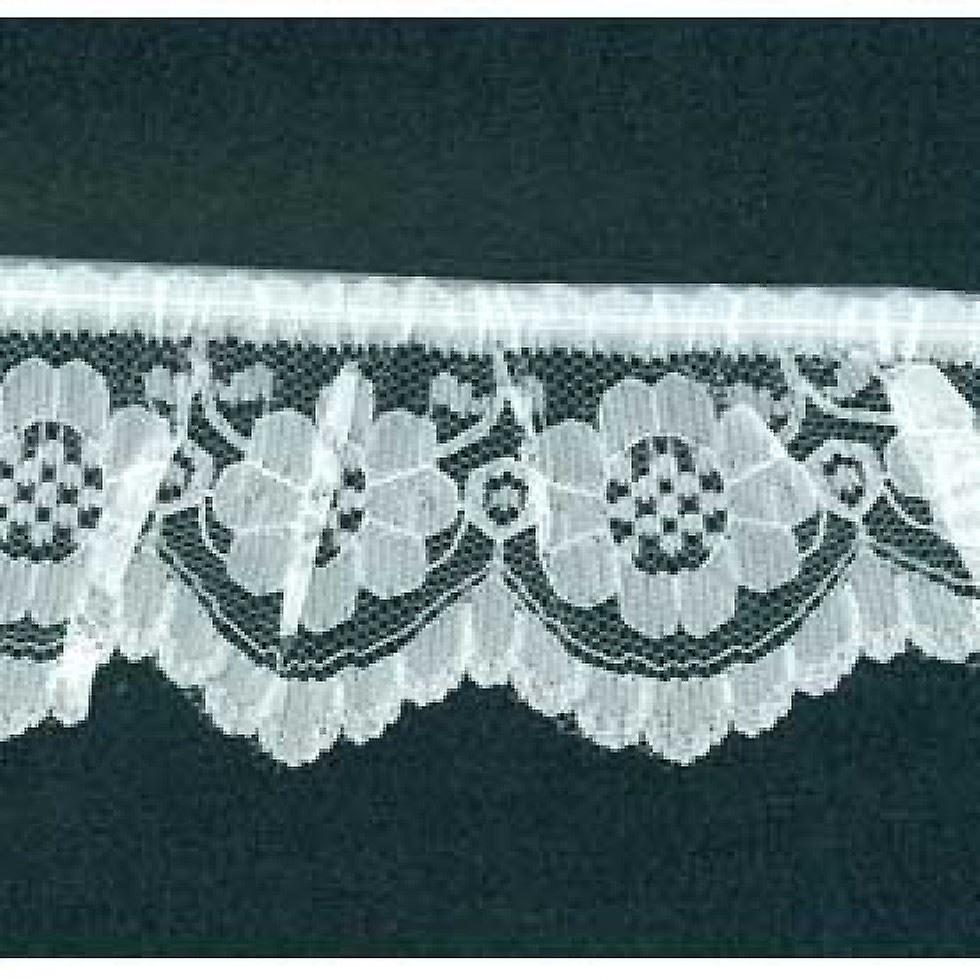 Minerva 55mm Gathered Nylon Lace Trim Cream - per metre
