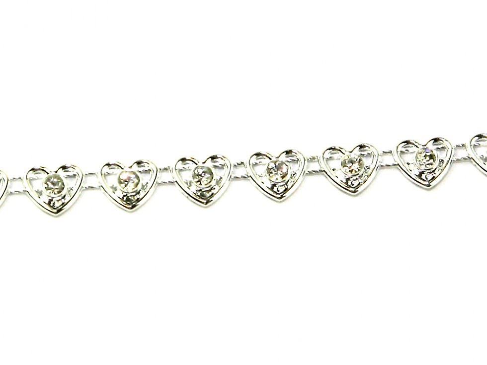 Minerva 8mm Heart Diamante Trim Silver - per metre