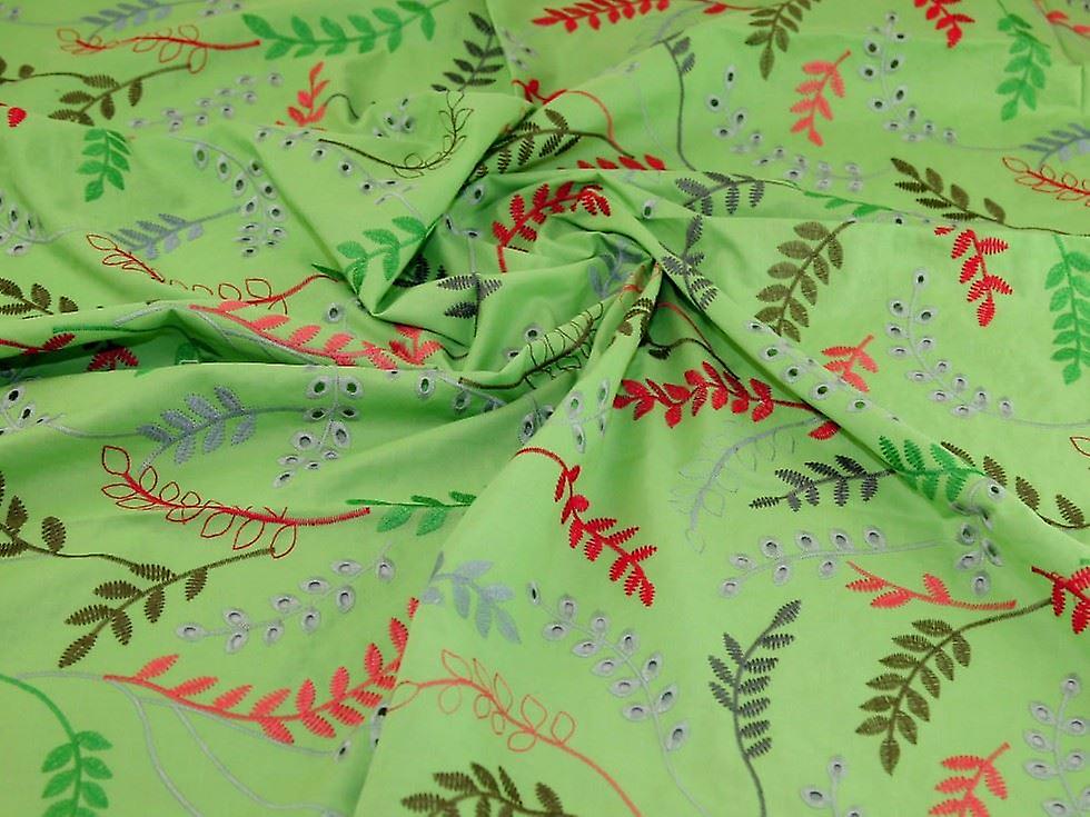Minerva Embroidered Cotton Lawn Fabric Green - per metre
