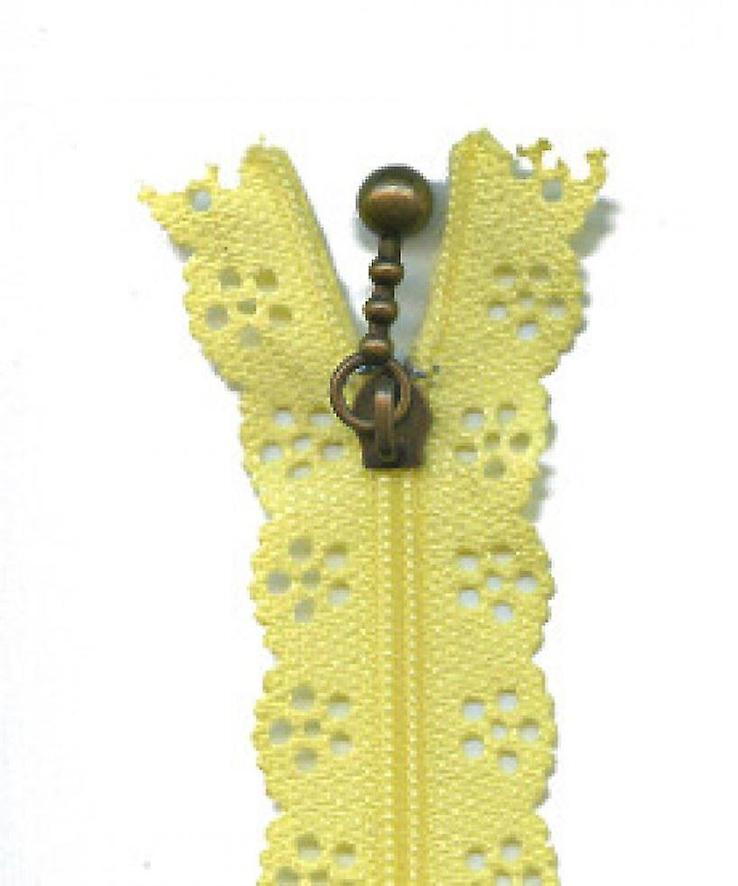 Introducing the Minerva Flower Lace Dress Zips in Buttermilk This beautiful dressmaking accessory is perfect for crafters and sewing enthusiasts looking to add a touch of elegance to their creations. With a length of 56 cm, it is ideal for dresses and other garments. The delicate flower lace design adds a feminine and stylish touch to any project. Made by the trusted brand Minerva, you can be assured of its quality and durability. The buttermilk color is versatile and can complement a variety of fabrics and styles. Upgrade your sewing projects with the Minerva Flower Lace Dress Zips in Buttermilk These beautiful lace zips are functional as a regular zip but instead of sewing them in so they are hidden, you sew them on the outside of your clothes or accessories so the lace effect edges can be seen. The zip teeth are nylon and the puller is a cute little star shape. Perfect for sewing on to purses, bags and childrens makes
