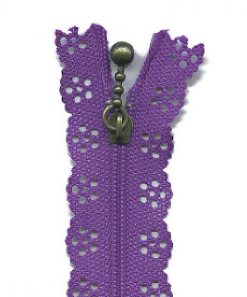 Introducing the Minerva Flower Lace Dress Zips in a stunning shade of purple This high-quality dressmaking accessory is perfect for crafters and sewing enthusiasts looking to add a touch of elegance to their creations. With a length of 56 cm, it is ideal for various dressmaking projects. The intricate flower lace design adds a beautiful and feminine touch to any garment. Made by the trusted brand Minerva, you can be assured of its durability and superior craftsmanship. Upgrade your sewing projects with the Minerva Flower Lace Dress Zips in Purple These beautiful lace zips are functional as a regular zip but instead of sewing them in so they are hidden, you sew them on the outside of your clothes or accessories so the lace effect edges can be seen. The zip teeth are nylon and the puller is a cute little star shape. Perfect for sewing on to purses, bags and childrens makes