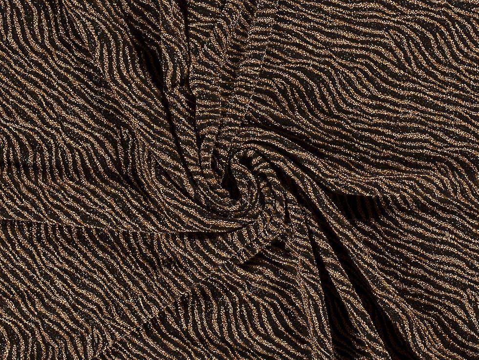 Minerva Metallic Textured Stretch Knit Fabric Gold on Black - per metre