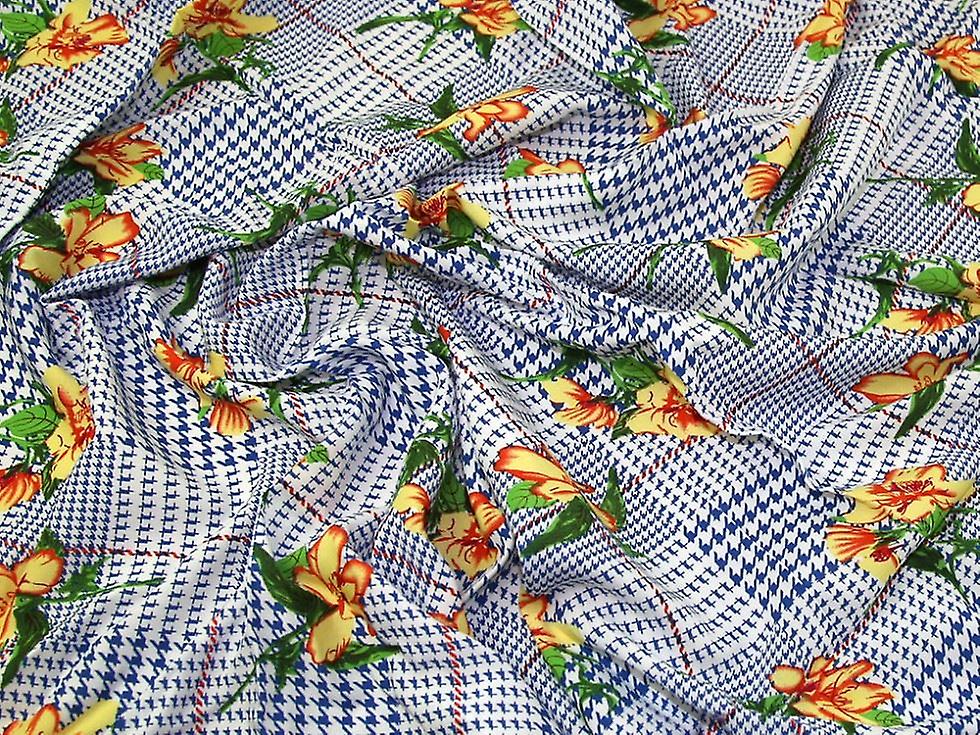 Minerva Rayon Challis Fabric Blue & Yellow - per metre