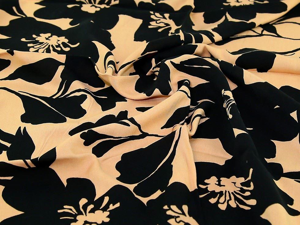 Minerva Viscose Challis Fabric Black & Tan - per metre