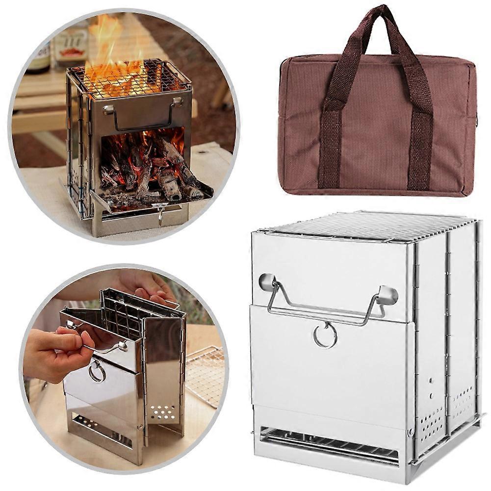 Mini Outdoor Wood Stove Portable Camping Picnic BBQ Foldable Grill Spatula Stainless Steel Wood Stove Charcoal Grill Spatula