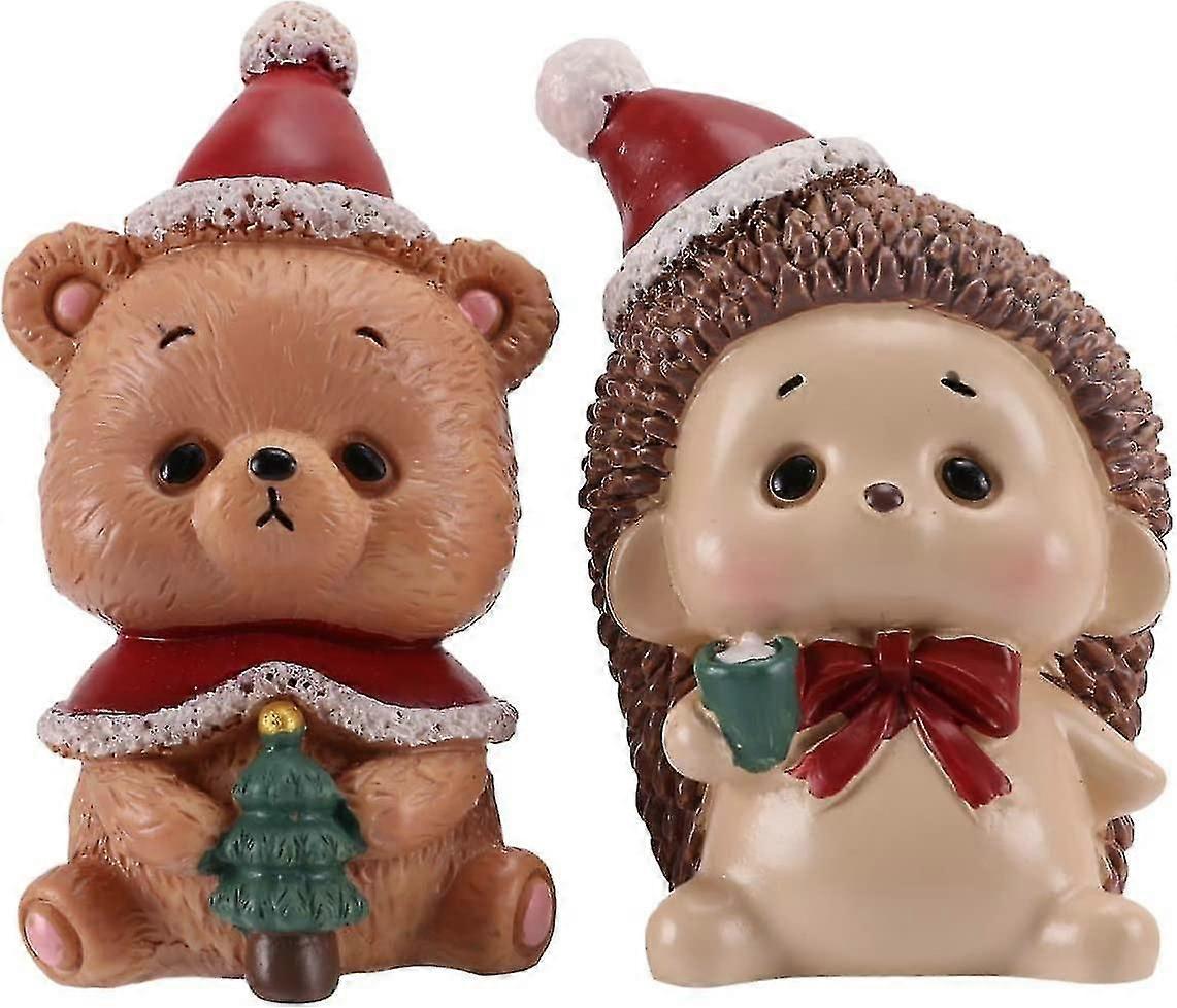 Miniature Figurines 2pcs (bear 5.5*3cm, Hedgehog 5*3.5cm)