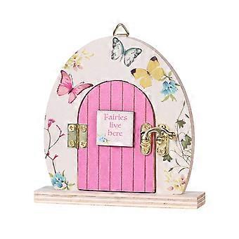 Miniature Wooden Fairy Tales Garden Pink Arc Shaped Door 3D DIY Yard Pixie Elf Mouse Hole with Triangle Hook House Wall Tree Shaped Decor 53CA