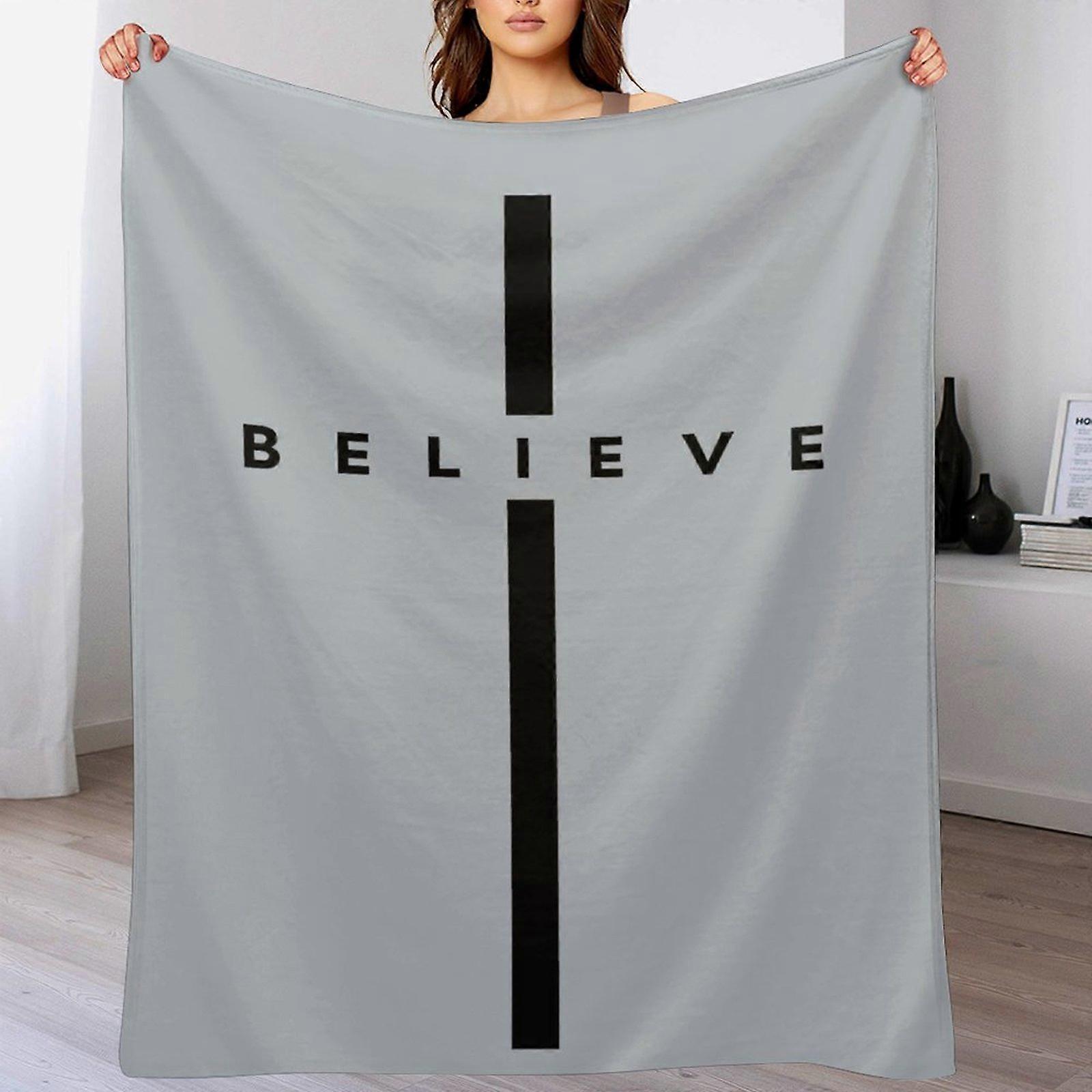 Minimalist Cross Graphic “I Believe” Faith Text Print Fleece Blanket, Soft Warm Cozy Throw for Sofa Bed Bedroom Prayer Room Home Decor, Unisex Adults