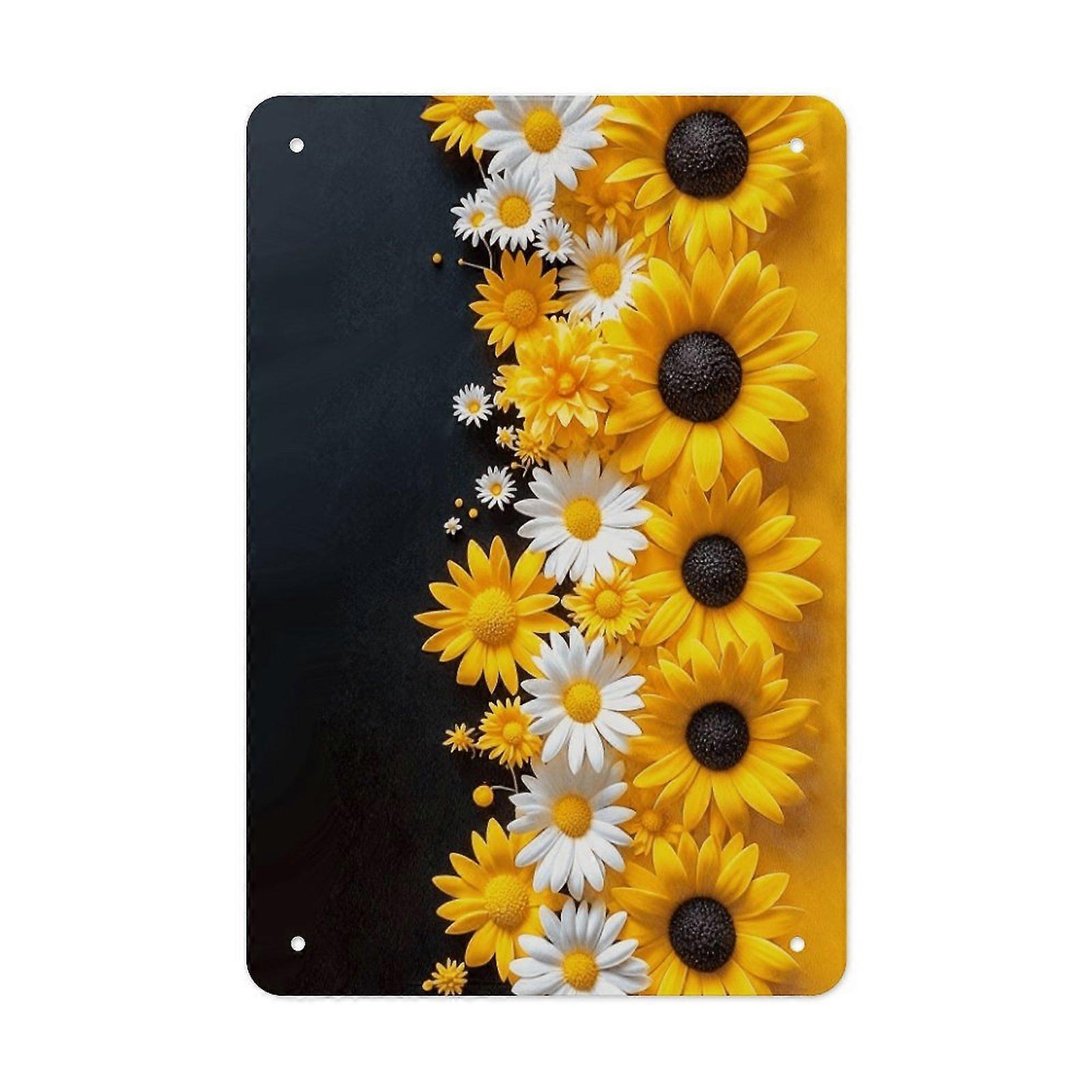 Minimalist Sunflower Daisy Metal Tin Sign Floral Wall Art Home Decor