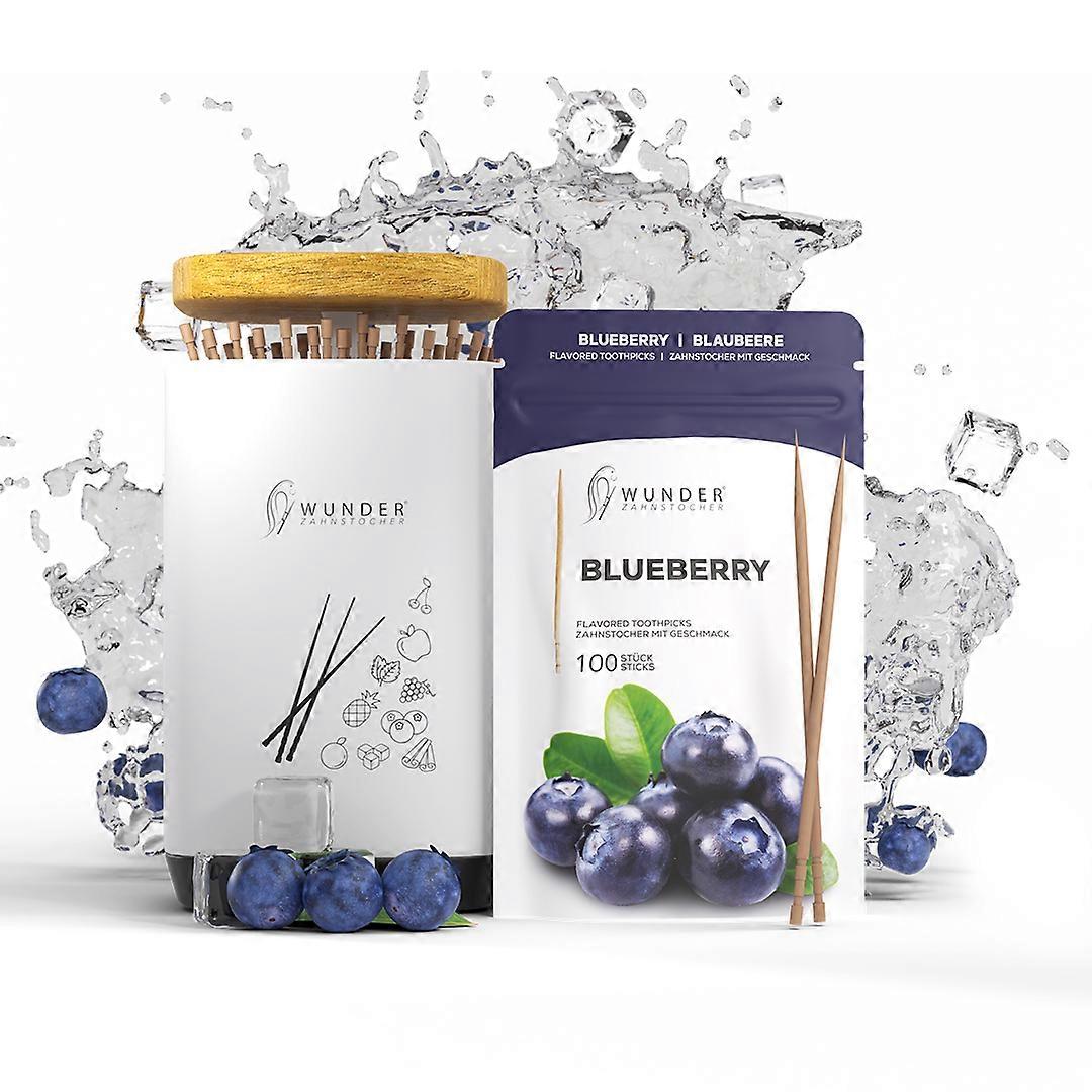 Wunder Zahnstocher - 1x Blaubeere Refill Wunderzahnstocher mit Geschmack + 1 x Zahnstocherspender für deinen Lifestyle