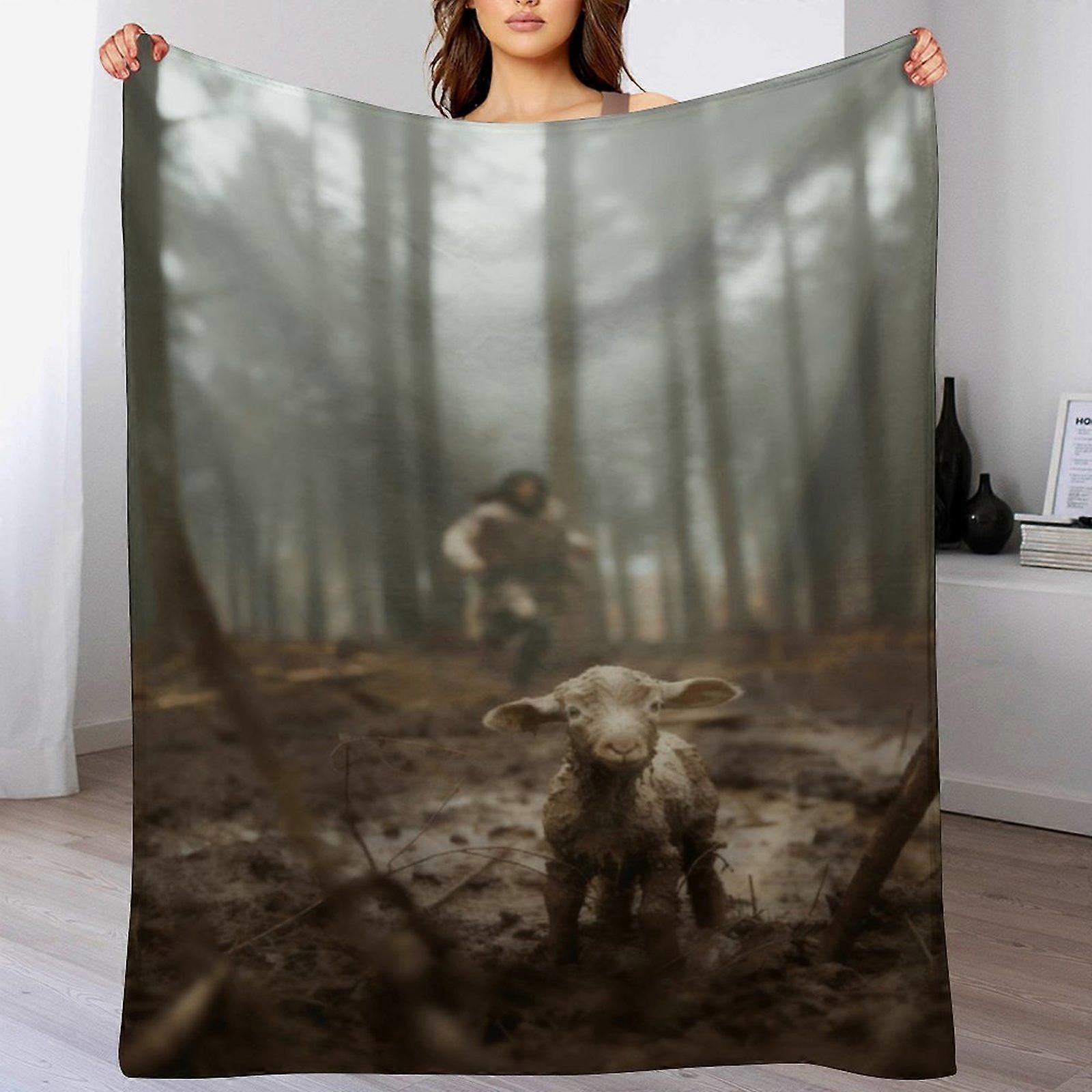 Misty Forest Lamb Print Flannel Blanket - Cozy Warm Throw | Gentle Spiritual Decor for Home