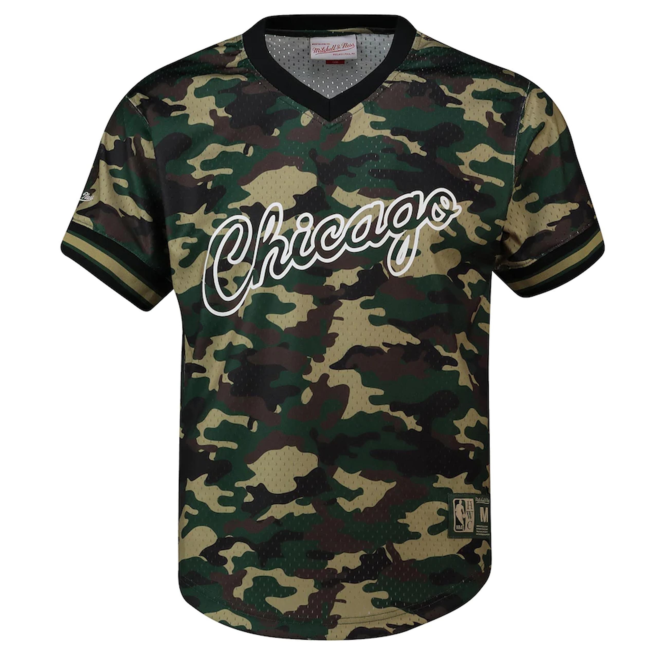 Mitchell & Ness NBA Camo Mesh V Neck T-Shirt Chicago Bulls MSPOMG18018 CBUCMWD1