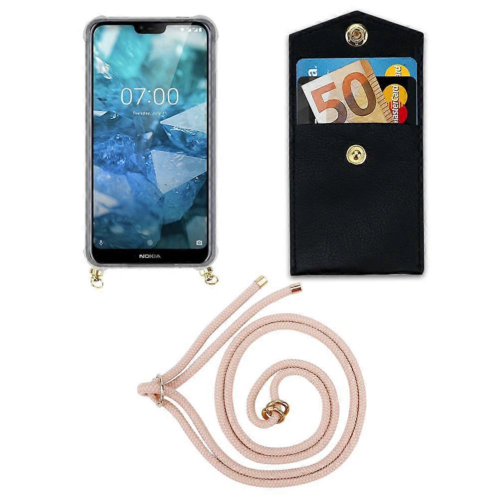 Cadorabo Umhänge Handyhülle aus transparentem TPU Silikon mit Kordel Schnur und kleinem Etui für Karten und Geld
