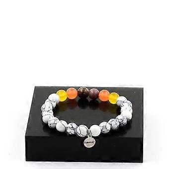 Mogok Ruby Beaded Bracelet, Burma, Myanmar + Orange Chalcedony + Yellow Agate + Howlite 8 mm