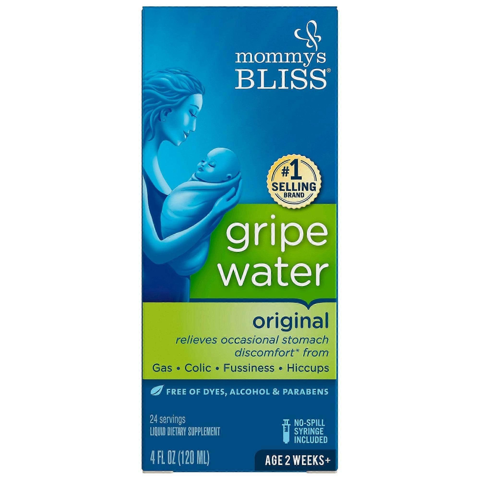 Mommy's Bliss Gripe Water is a safe and effective herbal supplement used to safely & naturally relieves stomach discomfort & gas occasionally associated with colic / upset tummy / hiccups / teething.