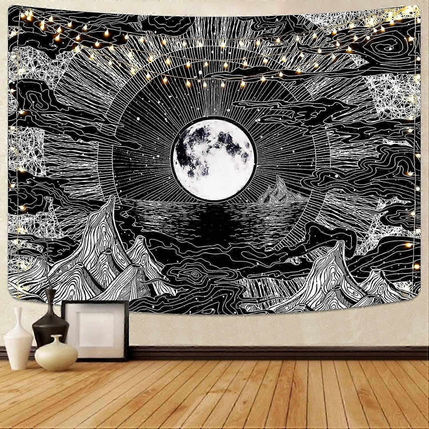 Moon and Star Tapestry psychedelic Moon Mountain Tapestries Star Tapestry Black Decor Natural Tapestries Wall Hanging for Room 83 x 59 inches