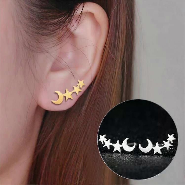 Moon Star Stud Earrings for Women-Silver Jewelry Gift by Silver