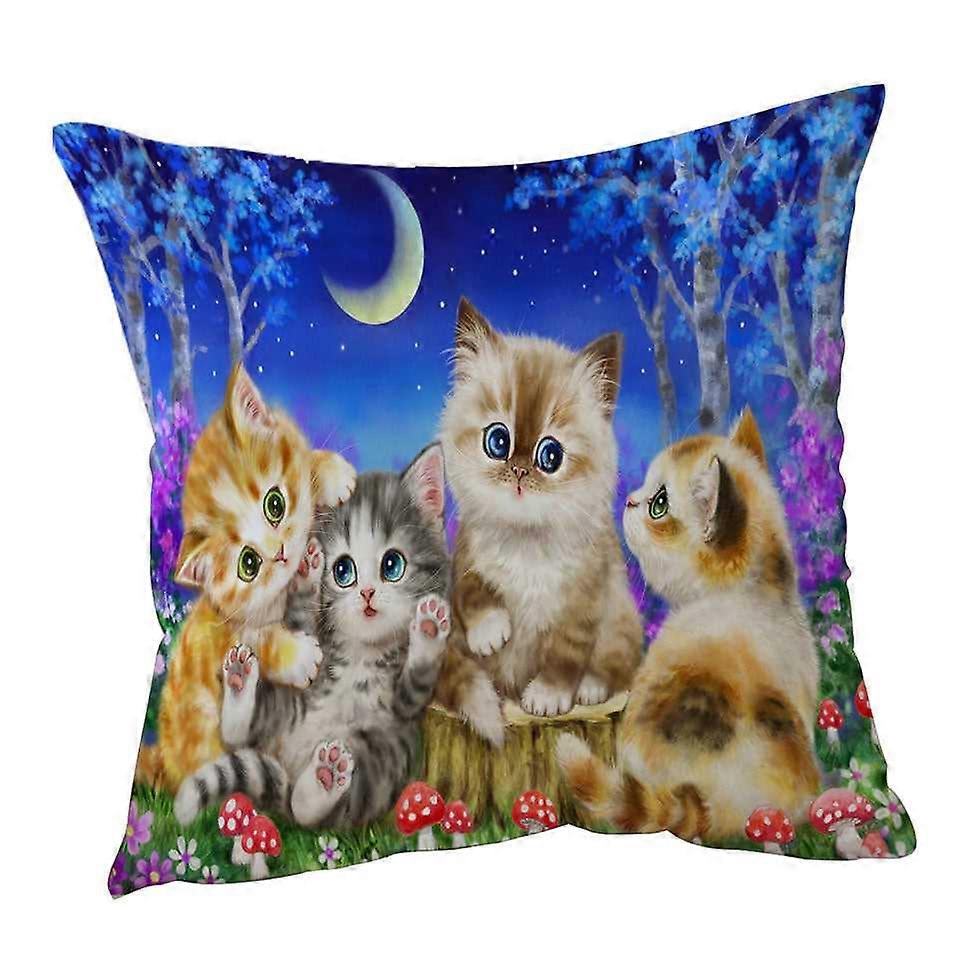 Moonlight Cats Cute Sweet Kittens in the Forest Cushion Cover