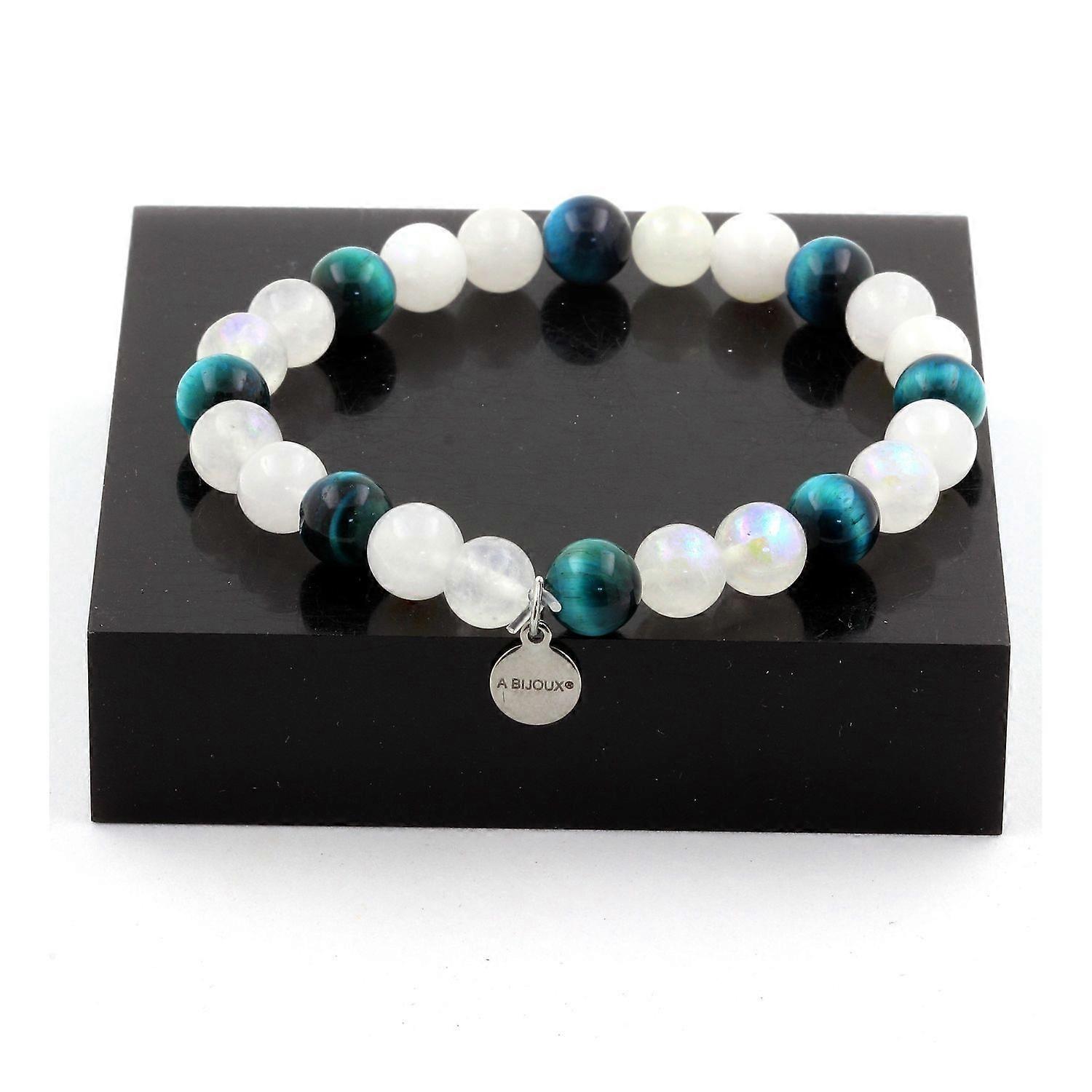 Moonstone Beads Bracelet + Light Blue Tiger Eye 8 mm