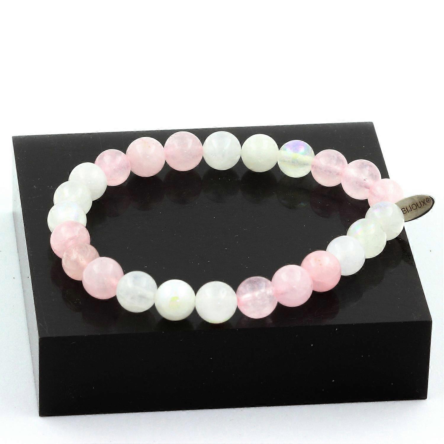 Moonstone + Rose Quartz Beaded Bracelet 8 mm