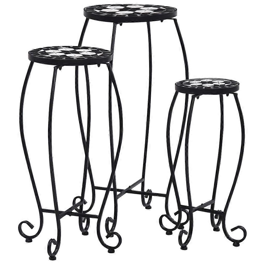 Mosaiktische 3 Stk. Keramik Schwarz und Weiß