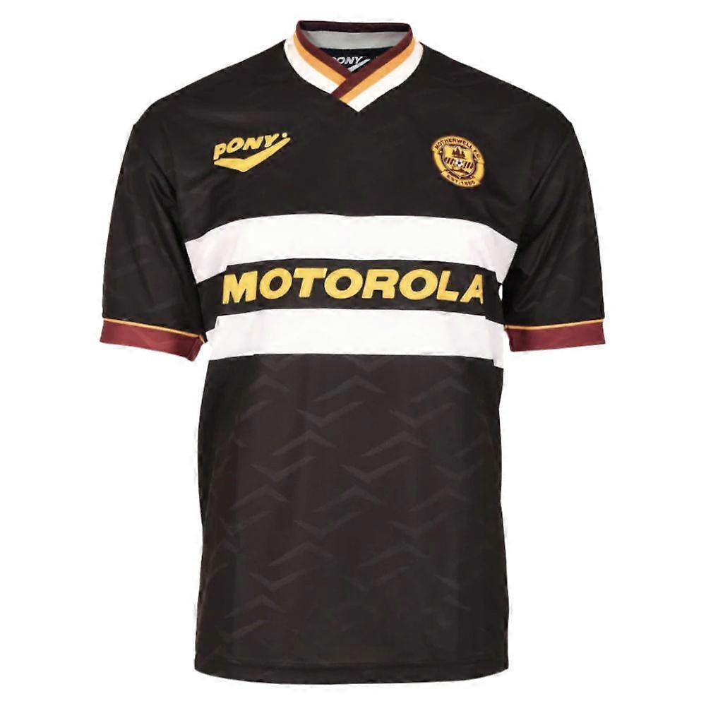 Step back in time with this authentic recreation of Motherwell FC\'s iconic 1995/96 away shirt. This classic design captures the essence of a memorable season when the Steelmen battled with pride and passion across Scotland\'s football grounds.PersonalisationName & Number - Customise your jersey with the name and number of your favourite Motherwell player or even your own name. We can print name in the same style worn by the players.