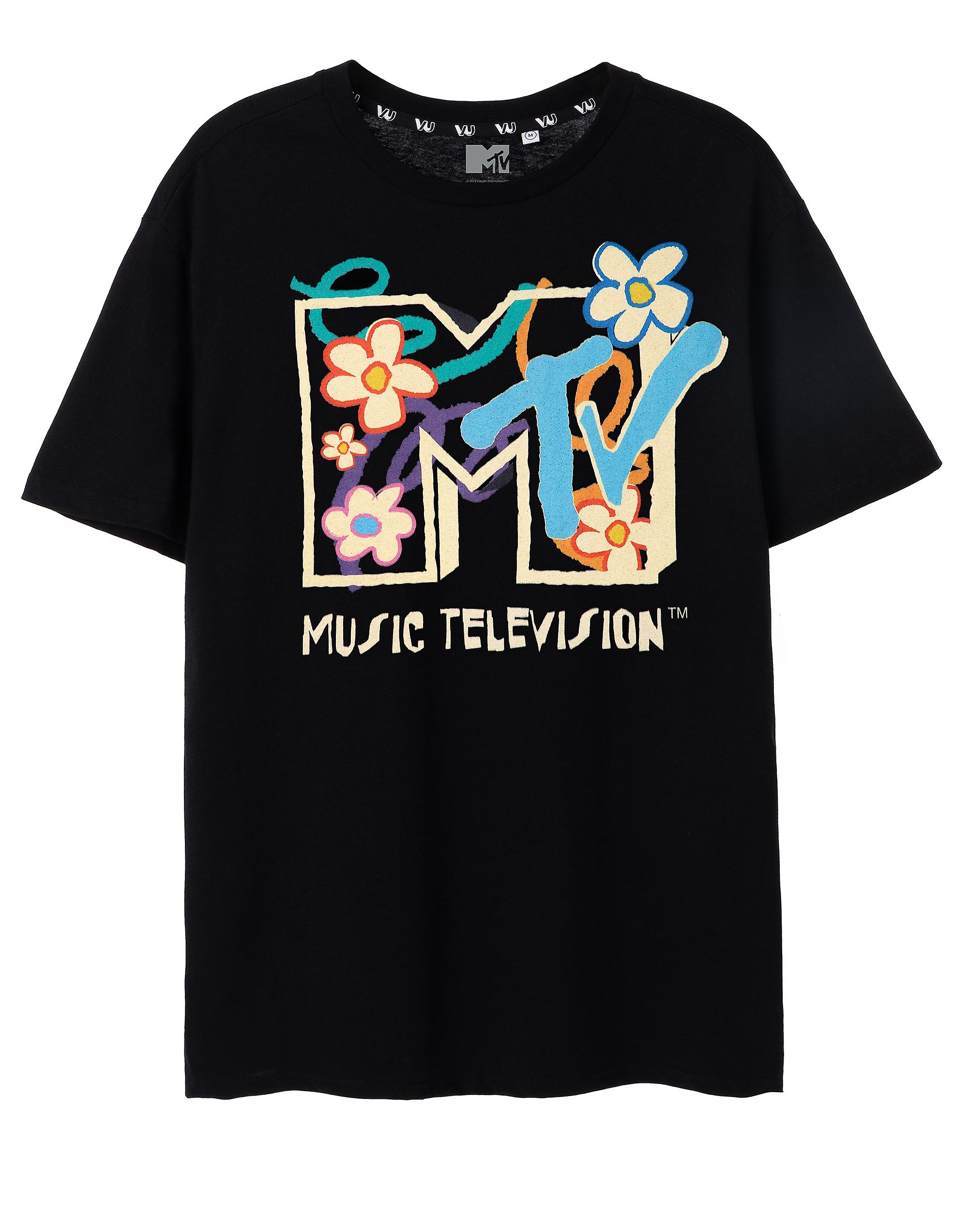 MTV Unisex Short Sleeved T-Shirt Black Flowers