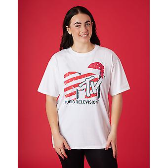 MTV Unisex Short Sleeved T-Shirt White Santa Hat