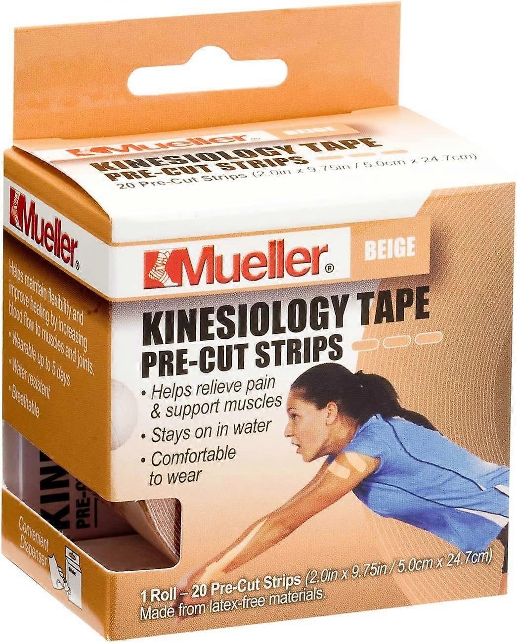 Mueller Pre-cut Kinesiology Tape, Beige, 20 Pre-cut Strips, 1 Ea