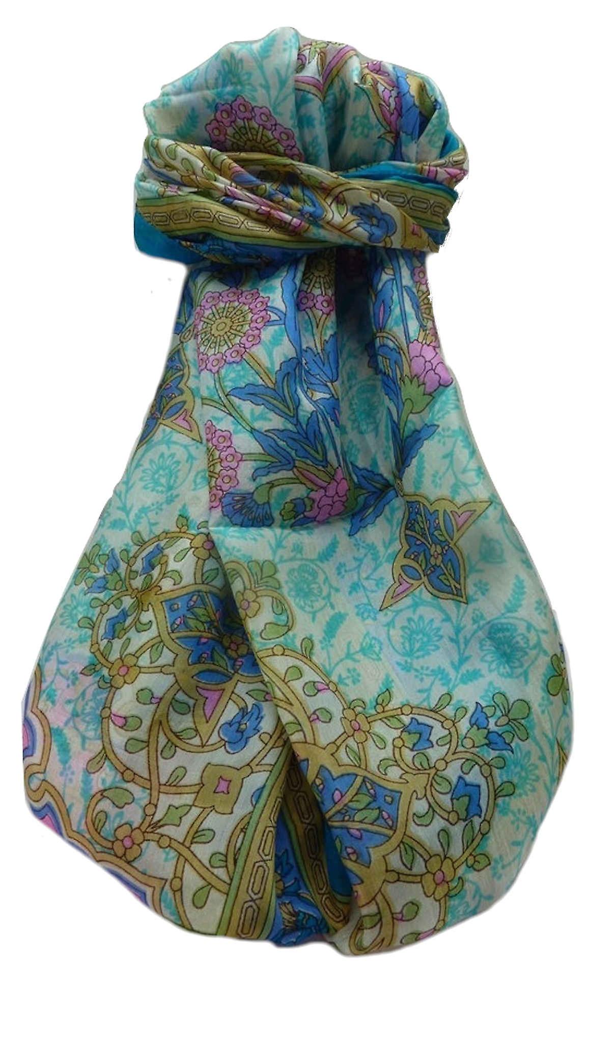 Mulberry Silk Traditional Long Scarf Kareena Aqua by Pashmina & Silk