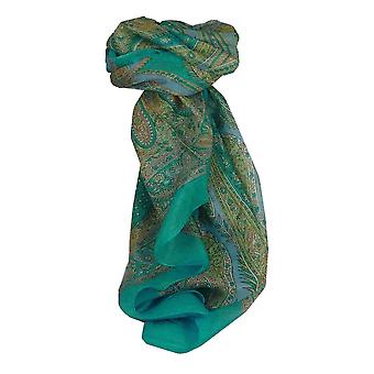 Mulberry Silk Traditional Square Scarf Fulki Aquamarine by Pashmina & Silk