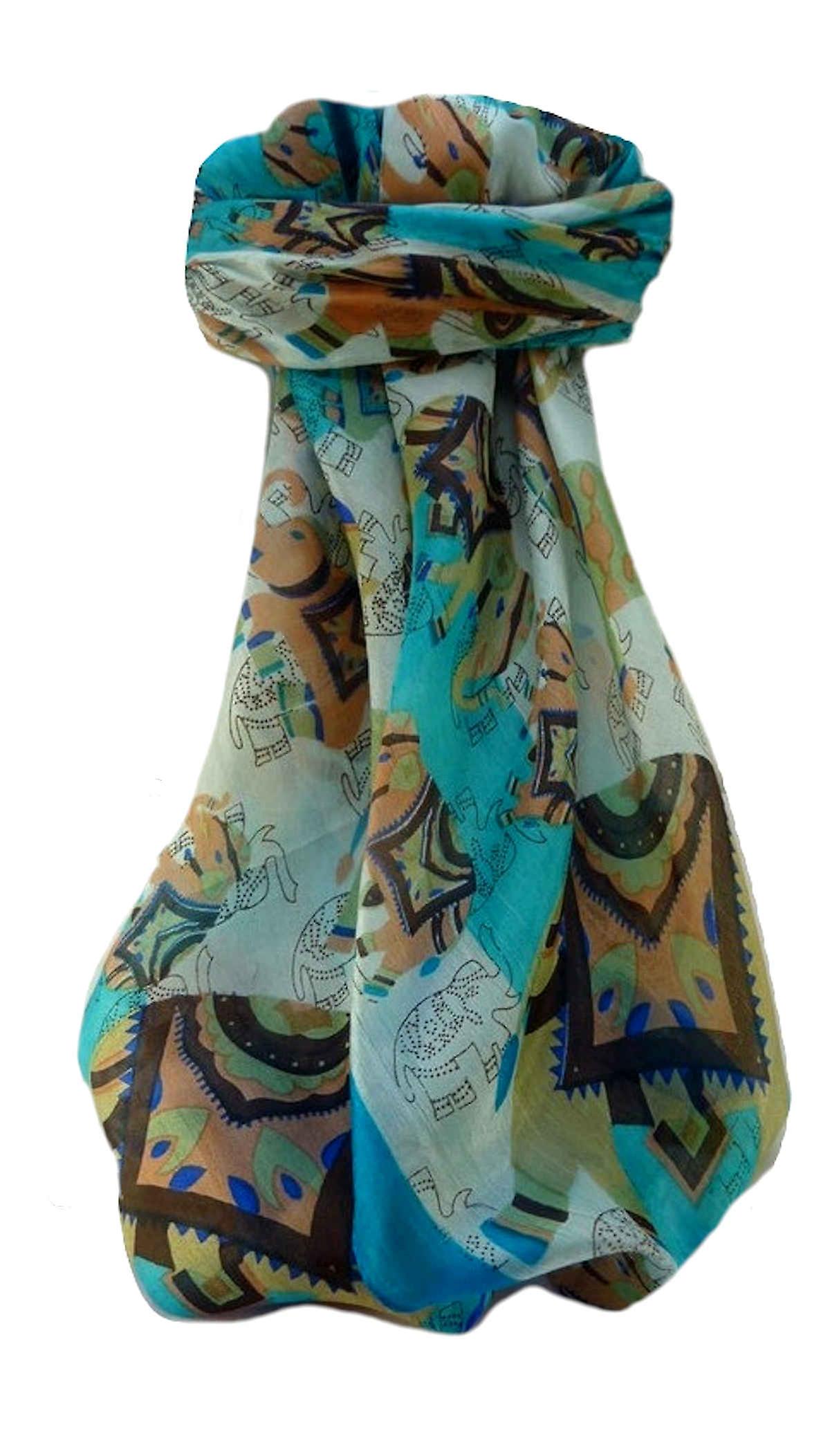 Mulberry Silk Traditional Square Scarf Lakshmi Aqua by Pashmina & Silk