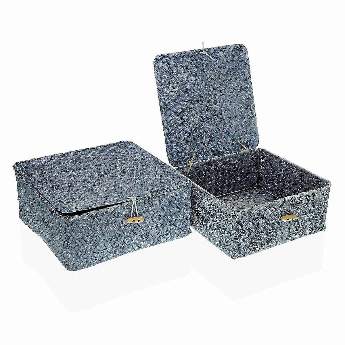 Mehrzweckkorb Versa Blau Seetang 23 x 10 x 23 cm 20 x 20 x 9 cm mit Deckel (2 Stück)