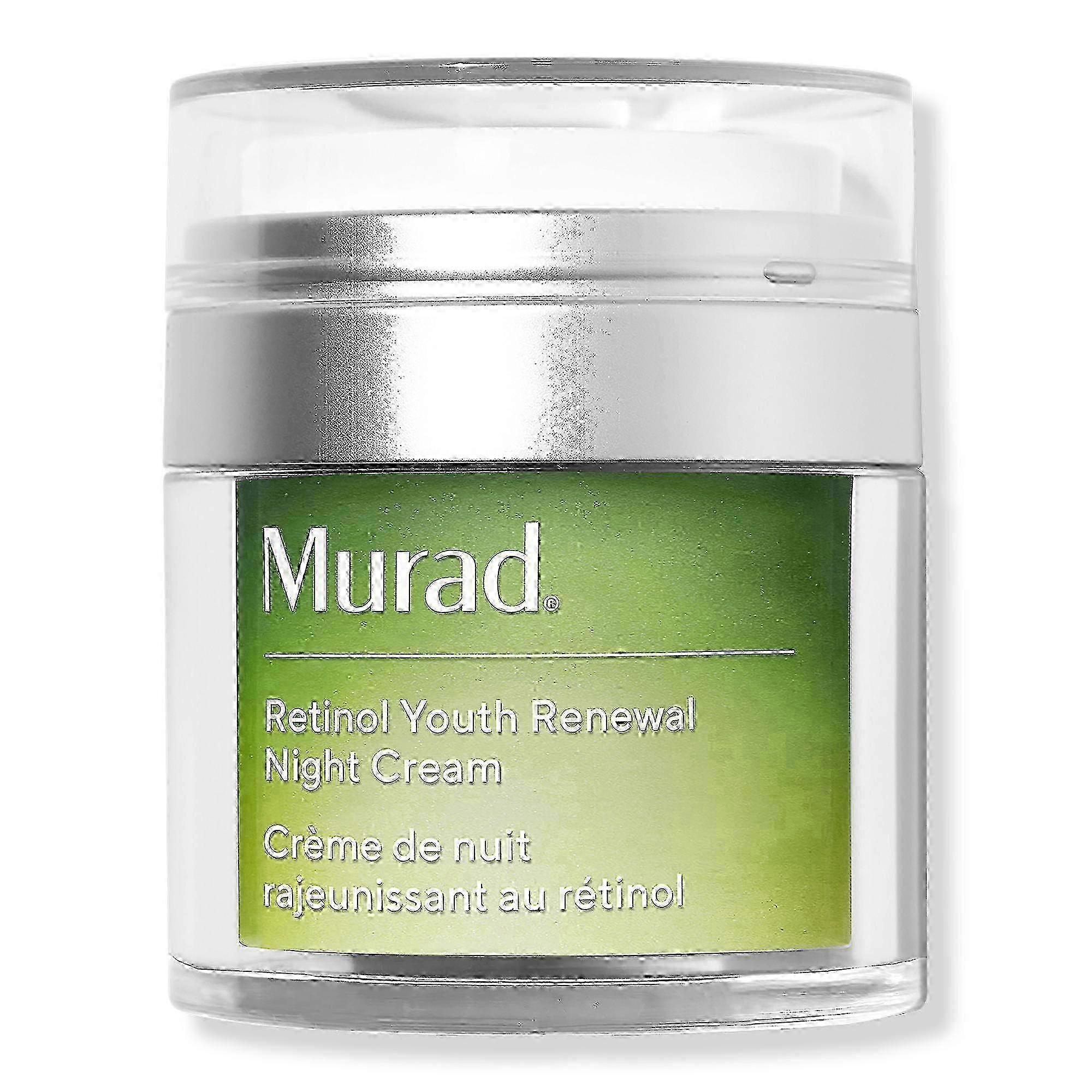 Murad Retinol Youth Renewal Night Cream nourishes as it visibly improves firmness, minimizes lines and deep wrinkles, evens tone and hydrates. Benefits Rapidly renews while being gentle enough for nightly useRich texture & lightweight finishStrengthen the skin's protective barrier with niacinamide & picolinamideFormulated for all agesCruelty-free: always tested on people, never on animals Formulated Without Parabens, sulfates, and phthalates Clinical Results 83% noticed firmer, more supple skin*80% saw increased radiance and glow*3X better when used together: Retinol Serum and Retinol Night Cream reduce the appearance of wrinkles 3x better when used together versus serum alone*Results in just 4 weeks Suggested Use: Use PM. Massage evenly over face, neck and chest. Recommended Murad Regimen: 1. PM, after cleansing apply a thin layer of [Retinol Youth Renewal Serum](https://www.ulta.com/retinol-youth-renewal-serum?productId=xlsImpprod14591005) to face. Reduce frequency if sensitivity occurs. 2. AM and PM, gently pat [Retinol Youth Renewal Eye Serum](https://www.ulta.com/retinol-youth-renewal-serum?productId=xlsImpprod14591005) around under-eyes & lids. Warning: Avoid contact with eyes. 3. PM, massage [Retinol Youth Renewal Night Cream](https://www.ulta.com/retinol-youth-renewal-serum?productId=xlsImpprod14591005) evenly over face, neck & chest. Reduce the appearance of wrinkles 3x better when you use with [Retinol Youth Renewal Serum](https://www.ulta.com/retinol-youth-renewal-serum?productId=xlsImpprod14591005). 4. Complete your AM regimen with your preferred Murad SPF . Expiration Date: We have fresh stock each week with exceptional expiration dates prior to APRIL 2024. Products will expire no later than six months to 1 year after receipt. Product Packaging: Please note that some manufacturer may often change their packaging. This product may arrive different from what is pictured. We will always ship the most up-to-date packaging to our customers. Please contact us if you have any questions about this product or would like to request an older version of this product. Healthcare Disclaimer: Content on this site is for reference purposes only. OTC Shoppe Express does not represent or warrant that the nutrition, ingredient, allergen and other product information on our Web or Mobile sites are accurate or complete, since this information comes from the product manufacturers. On occasion, manufacturers may improve or change their product formulas and update their labels. We recommend that you do not rely solely on the information presented on our Web or Mobile sites and that you review the product's label or contact the manufacturer directly if you have specific product concerns or questions. If you have specific healthcare concerns or questions about the products displayed, please contact your licensed healthcare professional for advice or answers. UPC: 000002556346 Weight: 0.63 lbs