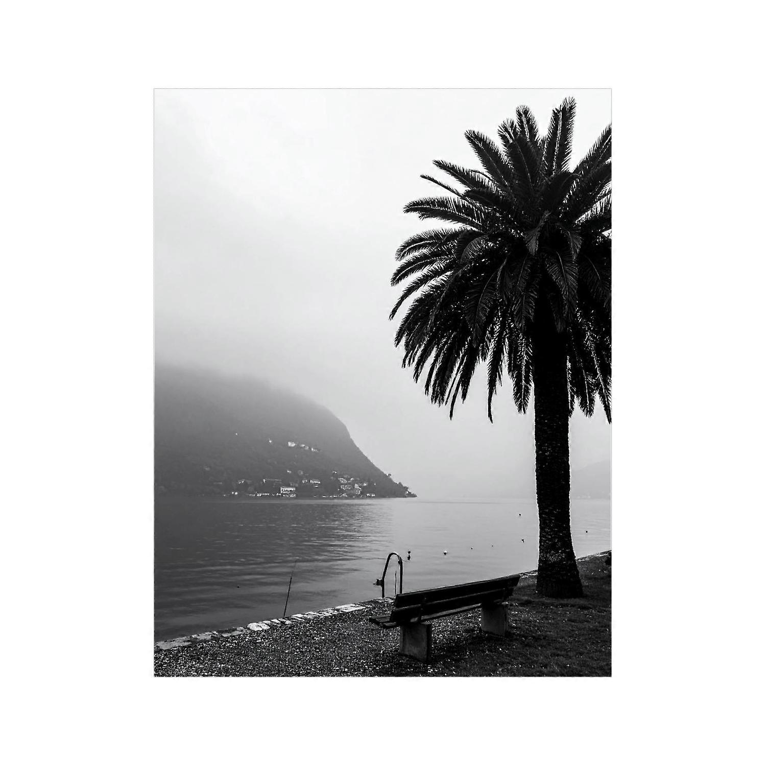 Wandbild Nebeliger Luganersee Schwarz Weiss 2
