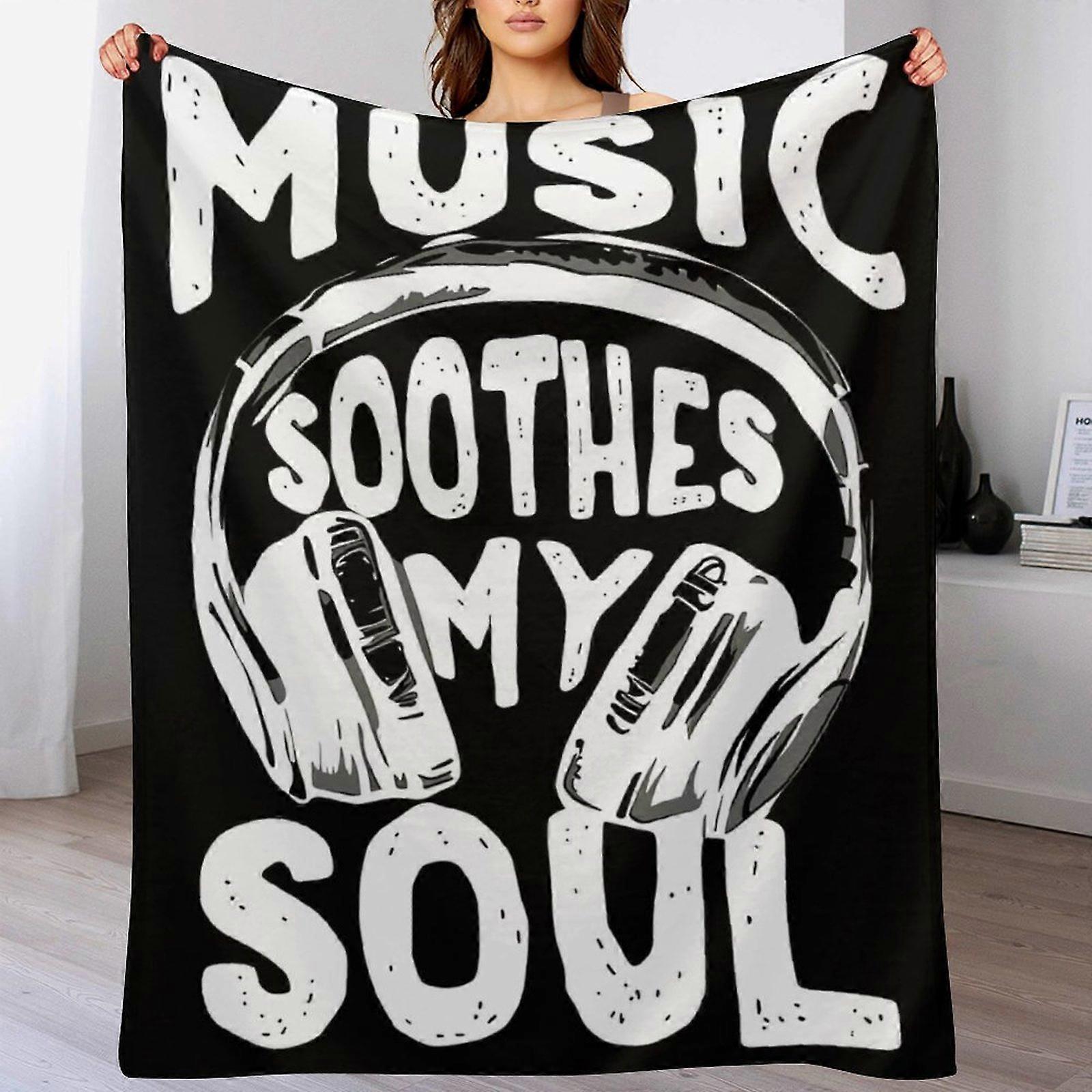 "MUSIC SOOTHES MY SOUL" Headphone Graphic Print Flannel Blanket - Soft Cozy Throw, 50x60 Inch, Music Lover Gift (Bed/Desk)
