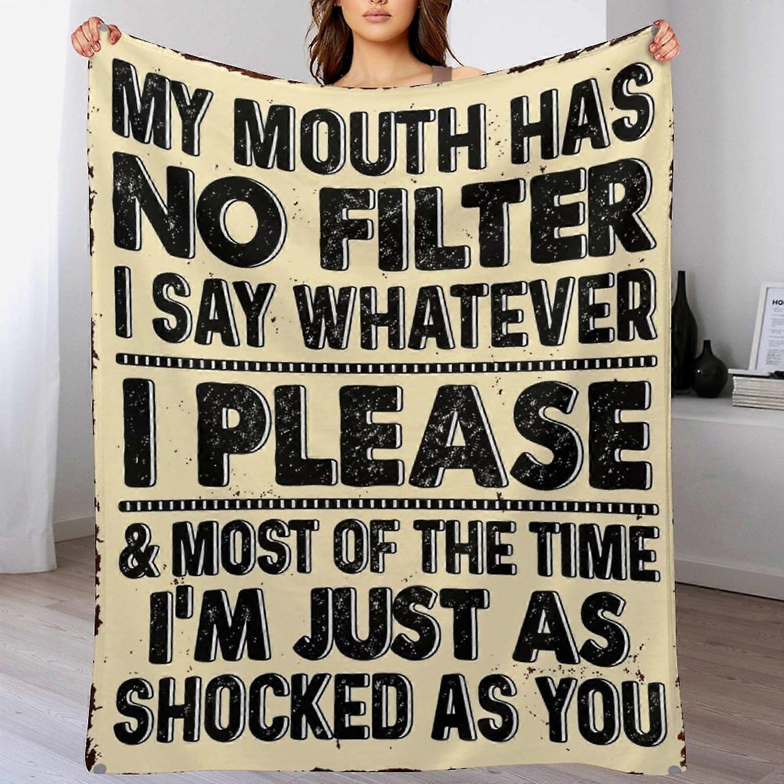 "My Mouth Has No Filter" Quote Print Flannel Blanket - Soft Warm Throw | Humorous Gift for Bold Individuals