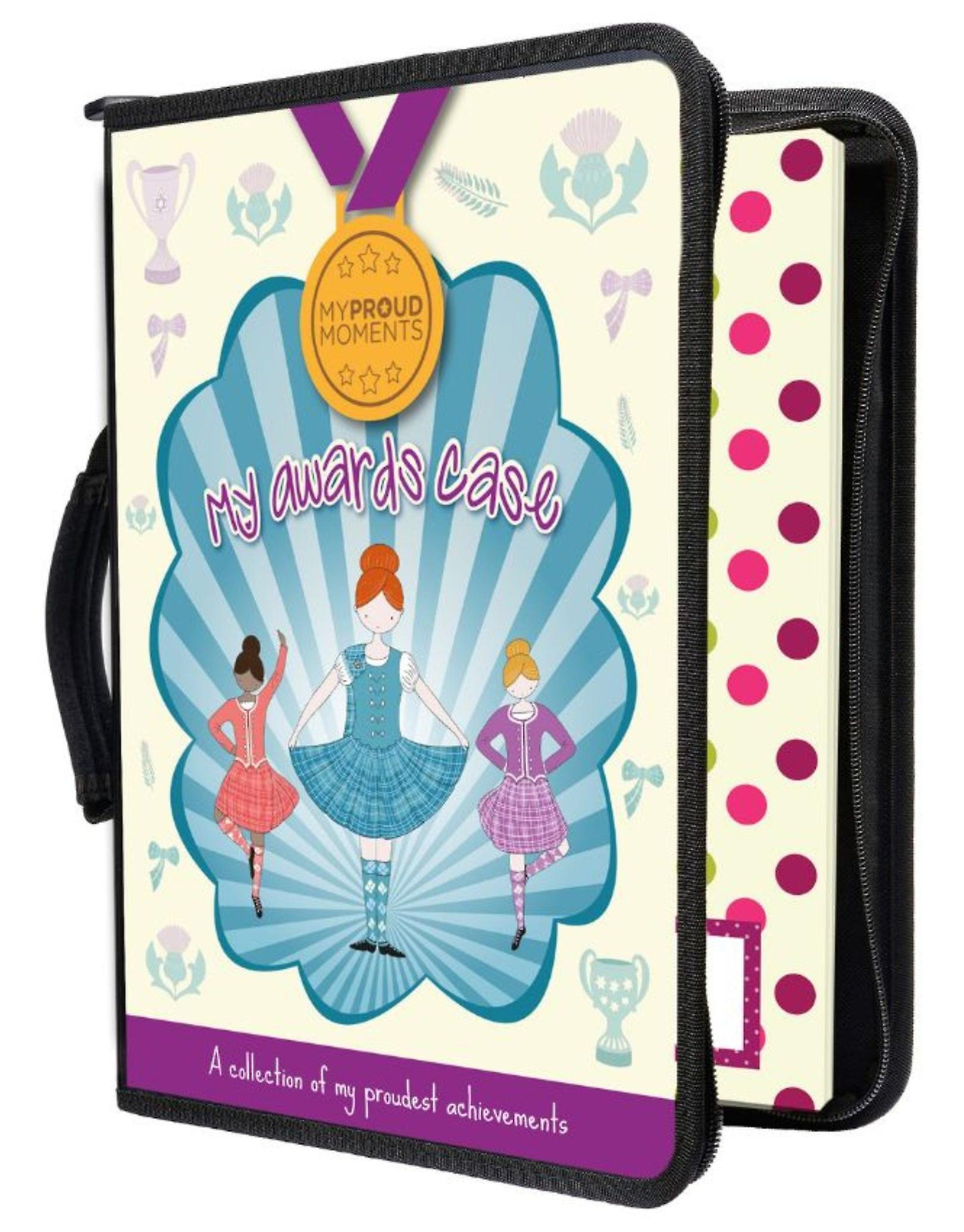 FEATURES Introduction Page - Front page to write their name and display photographs. Instruction Page - Guide for How to Display your Medals or Badges. Three Medal Sleeves - Display 24 Medals. Eight Certificate Holders - Display A4 or A5 certificates, to be mounted on. Three Scrapbook Pages - Pages for children to display photographs. Internal Pocket - Additional storage for Glue Dots, photographs, progress reports, etc. Case Dimensions - L 34.5cm x W 28cm / 1.4kg Microfibre case with padded carry handle Fully zipped for security The Highland Dance Awards Case is a Scottish design including the Scottish thistle and 3 dancers dressed in a traditional tartan kilt and sash. This case is perfect for your passionate young Highland dancers. With 3 PVC sleeves to display up to 24 medals and 8 certificate holder pages suitable for mounting A4 or A5 certificates, this case has plenty of room to protect their precious memories. These achievement cases make a great gift for any child by providing a fun way to display their well-deserved medals, badges and certificates. Made from a high-quality microfibre outer case with a padded carry handle and paired with a zip to ensure everything stays safely inside the case, your children will be thrilled to show off their proud moments at school, friends' or grandparents' houses for those precious "show and tell" occasions. Actual size of the case: L 34.5cm x W 28cm x H 4cm