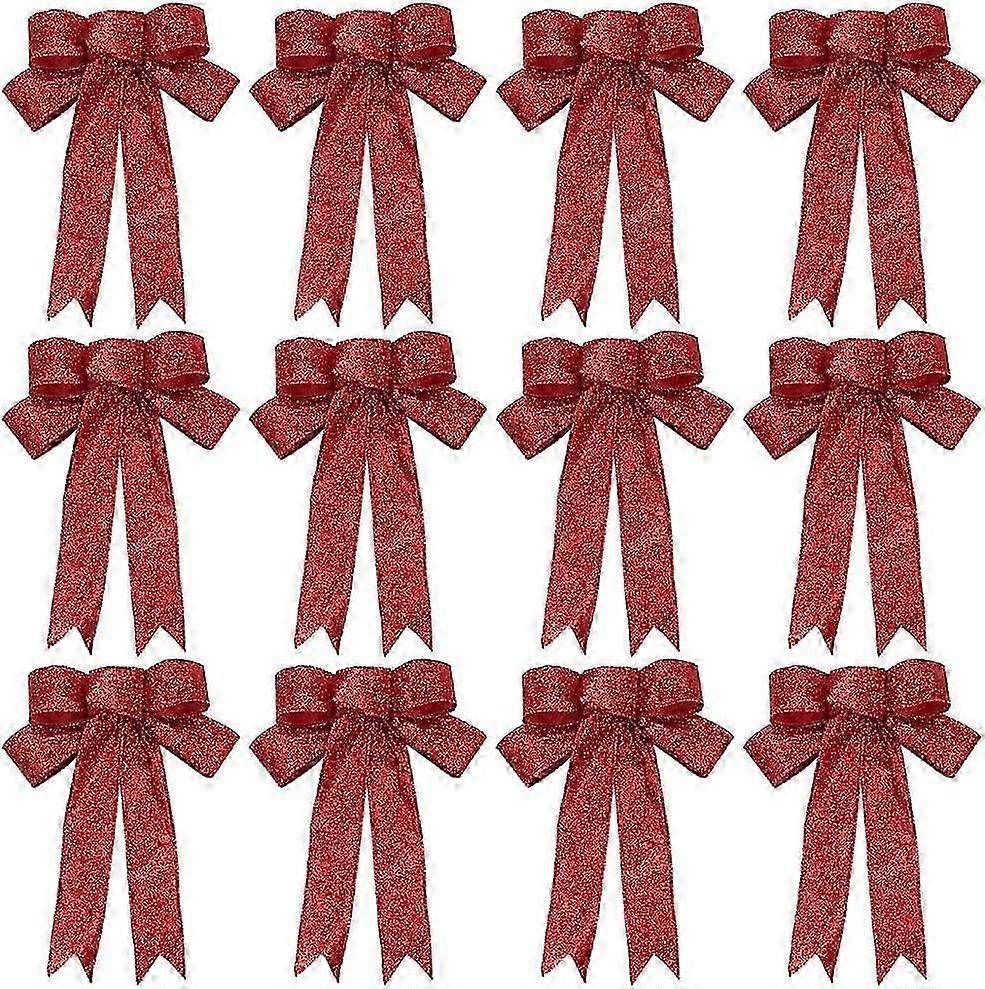 Bows and Ribbons Christmas Glitter Bows,12 Pieces Red Christmas Ribbon Christmas Garland Bows Christ