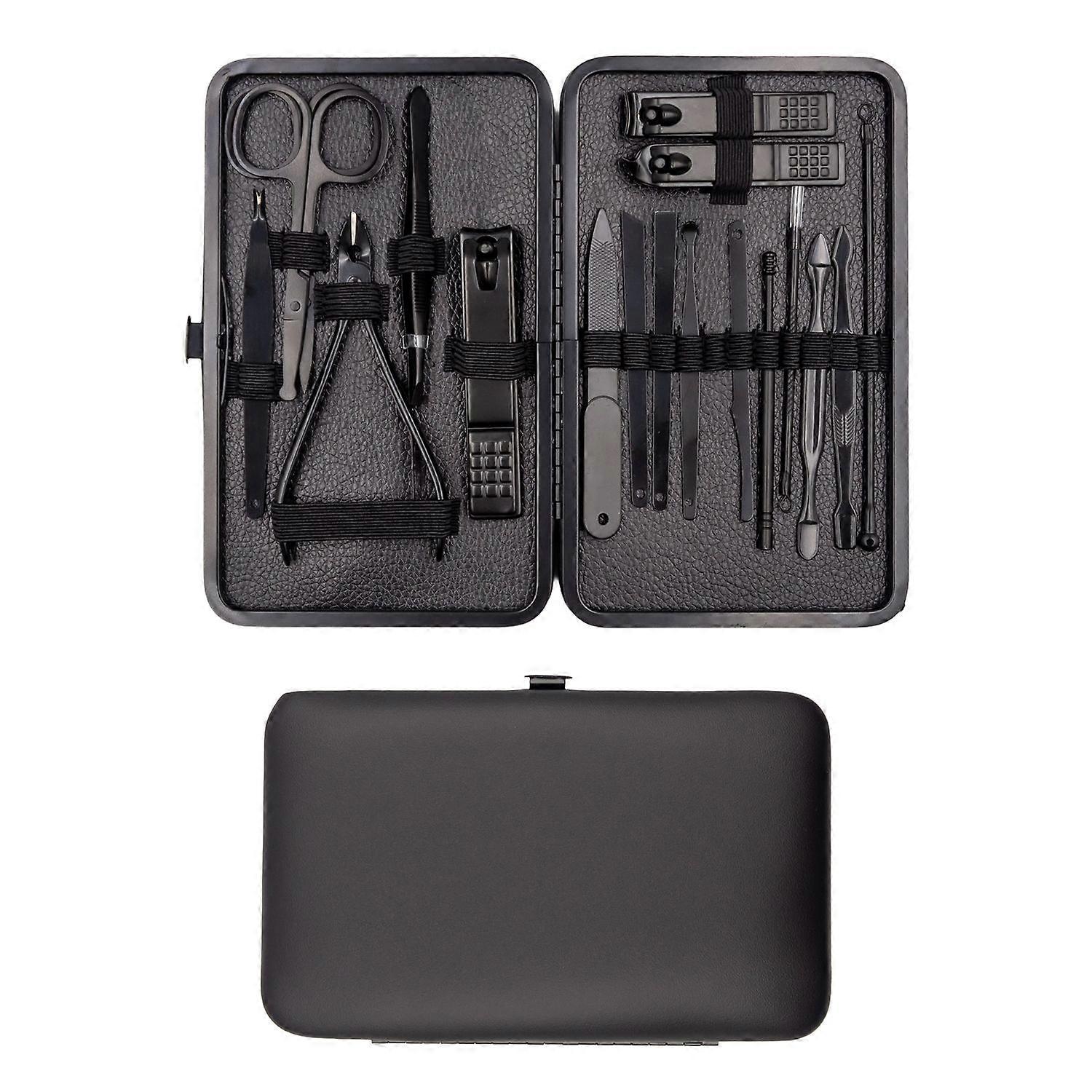 Nagelpflege Maniküre Set aus Edelstahl in Schwarz mit Aufbewahrungsetui – Nagelpflege Pediküre Werkzeug Nagelknipser Schere Feile Pinzette (18-teilig)