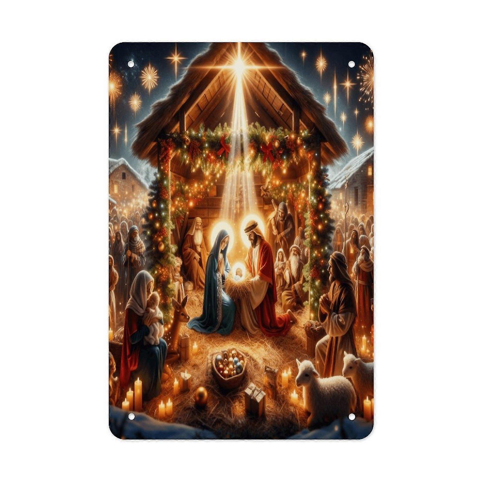 Nativity Scene Metal Tin Sign Vintage Christmas Wall Decor Rustic Holiday Home Art