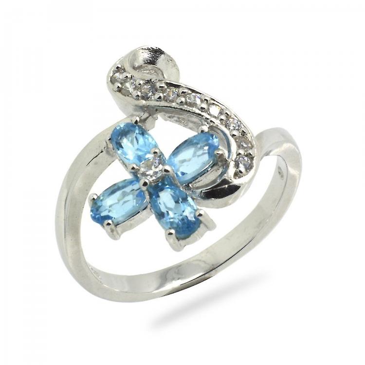 Natural Blue Zircon & 925 Sterling Silver Ring awo-2