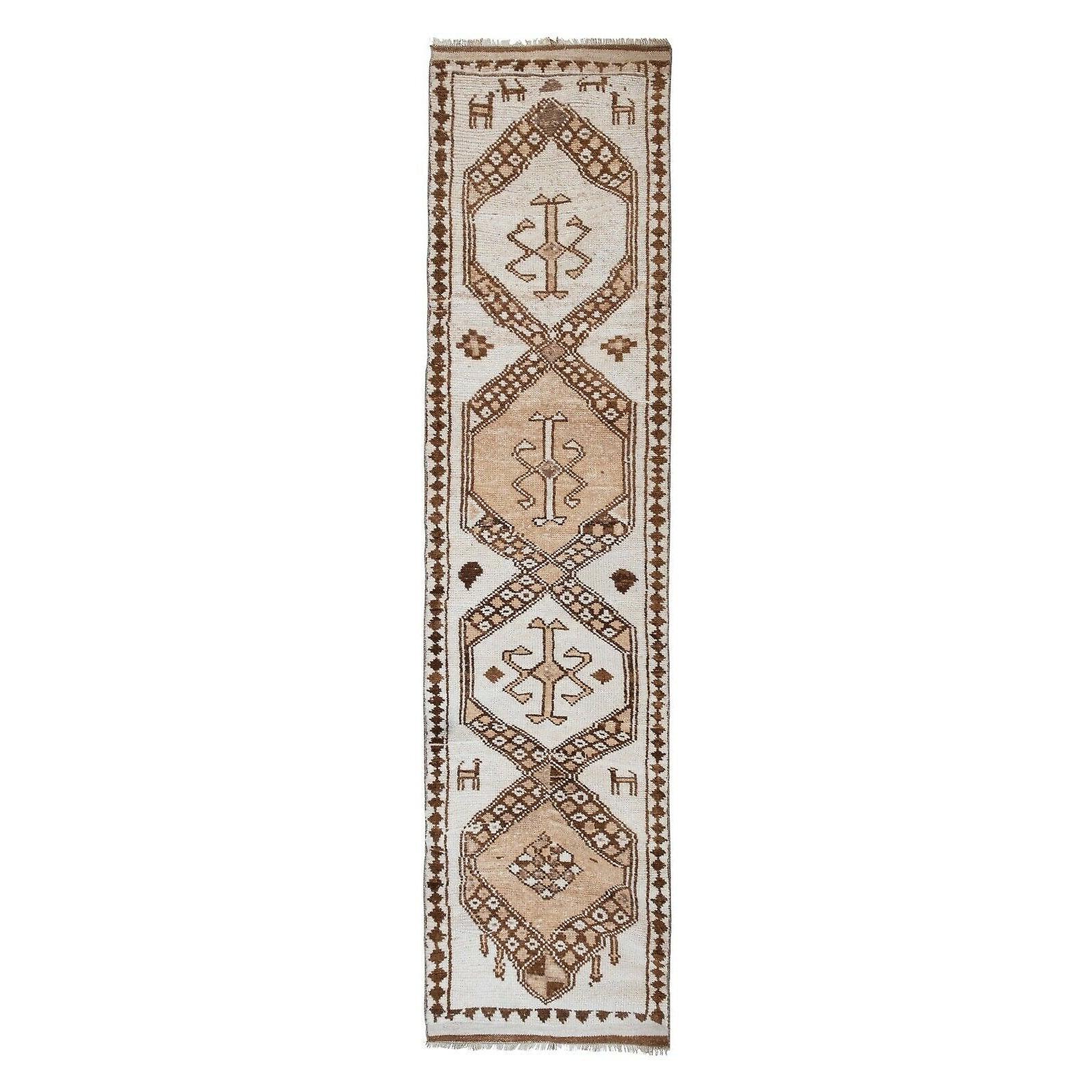 Natural Herki Turkish Hand-knotted Runner - Ethnic Carpet