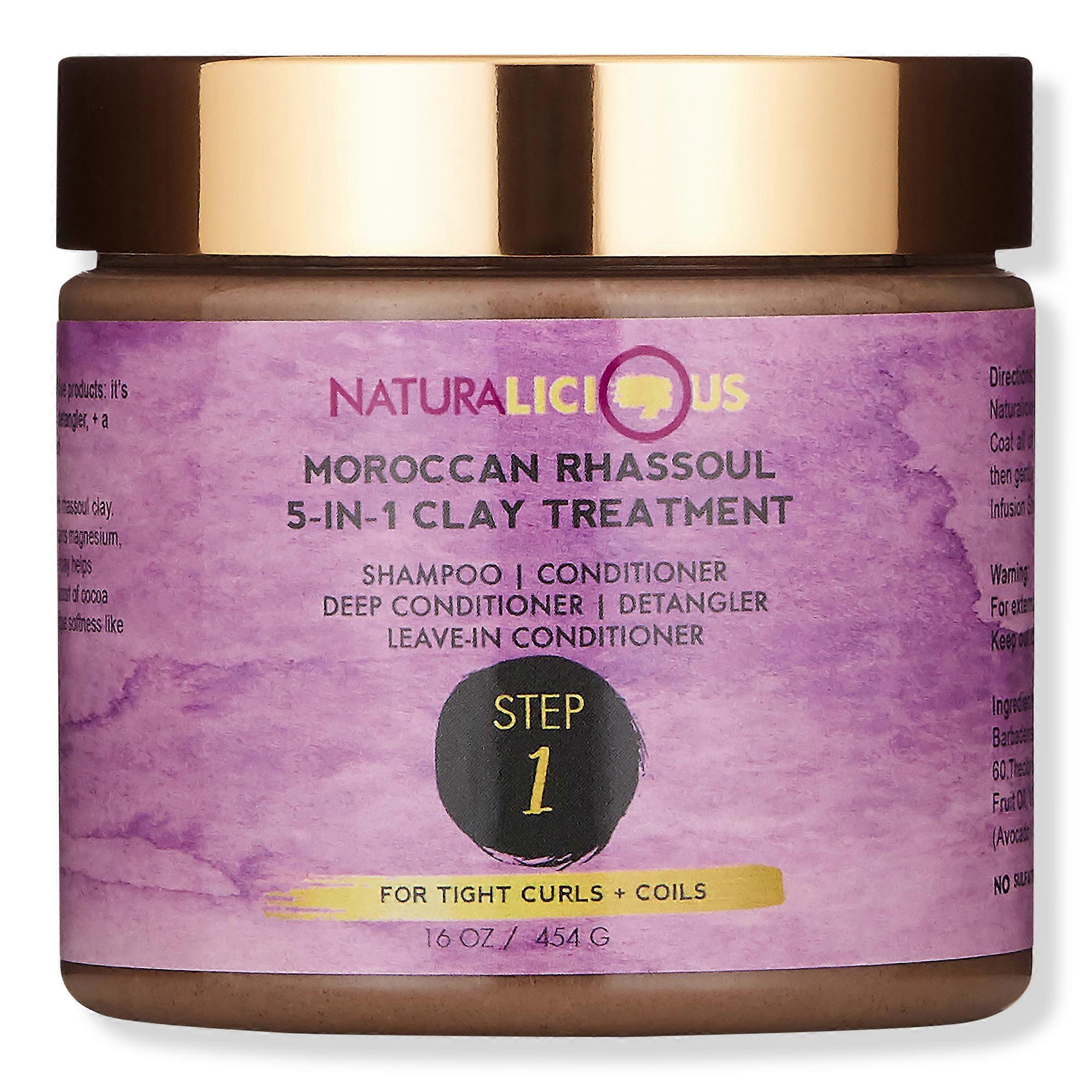 The Naturalicious Moroccan Rhassoul 5-in-1 Clay Treatment is a versatile hair care product designed to simplify your hair regimen. It combines the benefits of a cleanser, conditioner, detangler, deep conditioner, and leave-in treatment in one easy-to-use formula. Suitable for all hair types, this clay treatment helps cleanse, condition, and strengthen your hair while managing frizz and improving hydration.