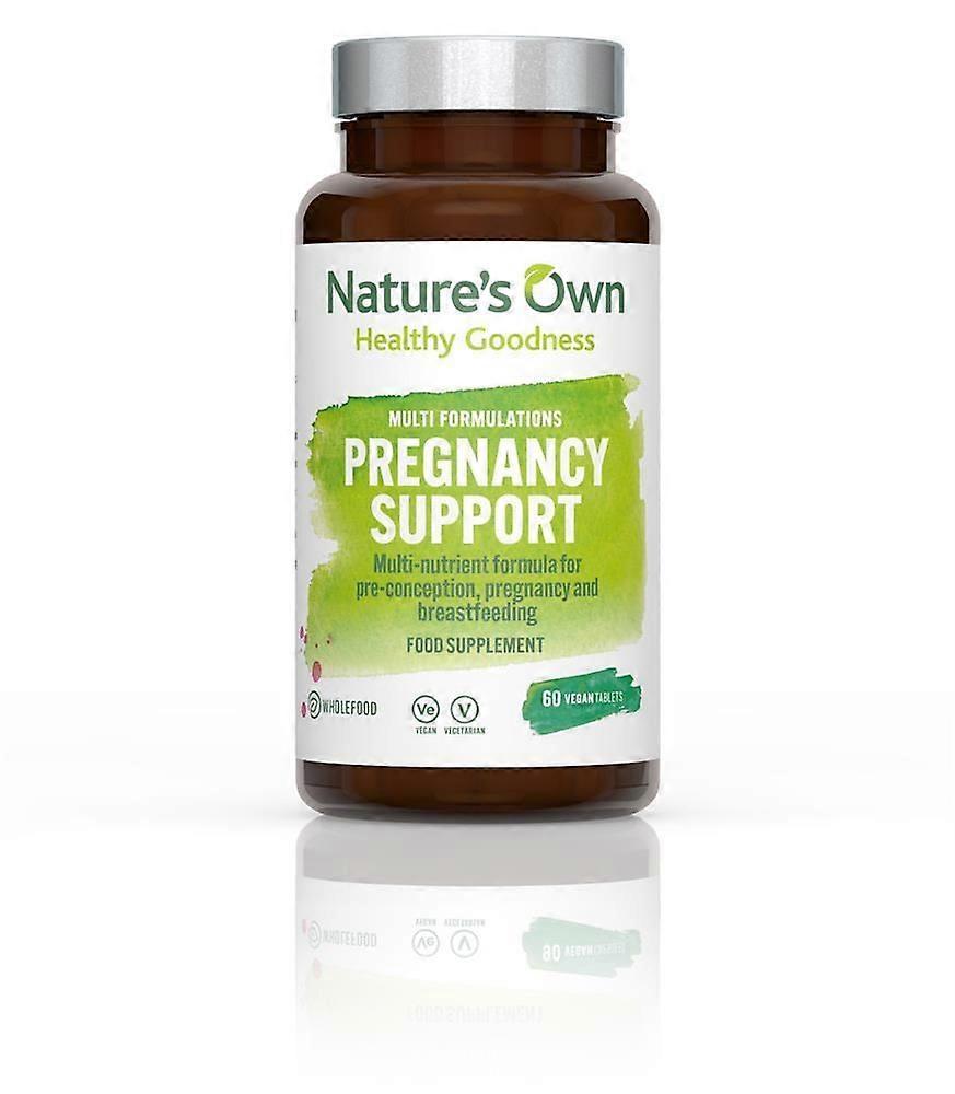 Natures Own Pregnancy Support 60 Tablets is a carefully formulated wholefood multivitamin and mineral supplement designed to support women during preconception, pregnancy, and breastfeeding. This comprehensive formula provides essential nutrients in their most bioavailable forms to promote optimal maternal and fetal health throughout all stages. Contains the UK Government recommended levels of vitamin D and folic acid, vital for maternal and fetal wellbeing. Utilises methylfolate, the safest and most bio-effective form of folate, ensuring superior absorption and efficacy. Includes vitamin K2 in its most bioactive form to support bone health and calcium metabolism. Folic acid/folate contributes to normal maternal tissue growth and plays a crucial role in reducing the risk of neural tube defects by enhancing maternal folate status. Rich in antioxidant minerals that provide essential support against oxidative stress during preconception, pregnancy, and breastfeeding. Maintains adequate iron levels, an important mineral for maternal blood volume expansion and oxygen transport. Provides calcium, crucial for fetal bone and teeth development and maintaining maternal bone health by compensating for increased demands during pregnancy.This supplement is typically recommended at a dosage of two tablets daily with food, offering a convenient 30-day supply per bottle. It is ideal for women planning a pregnancy, currently pregnant, or breastfeeding who want to ensure they meet their nutritional needs with a high-quality, carefully balanced multivitamin.Suggested Use: Take 2 tablets daily with food as a food supplement or as directed by a healthcare practitioner.